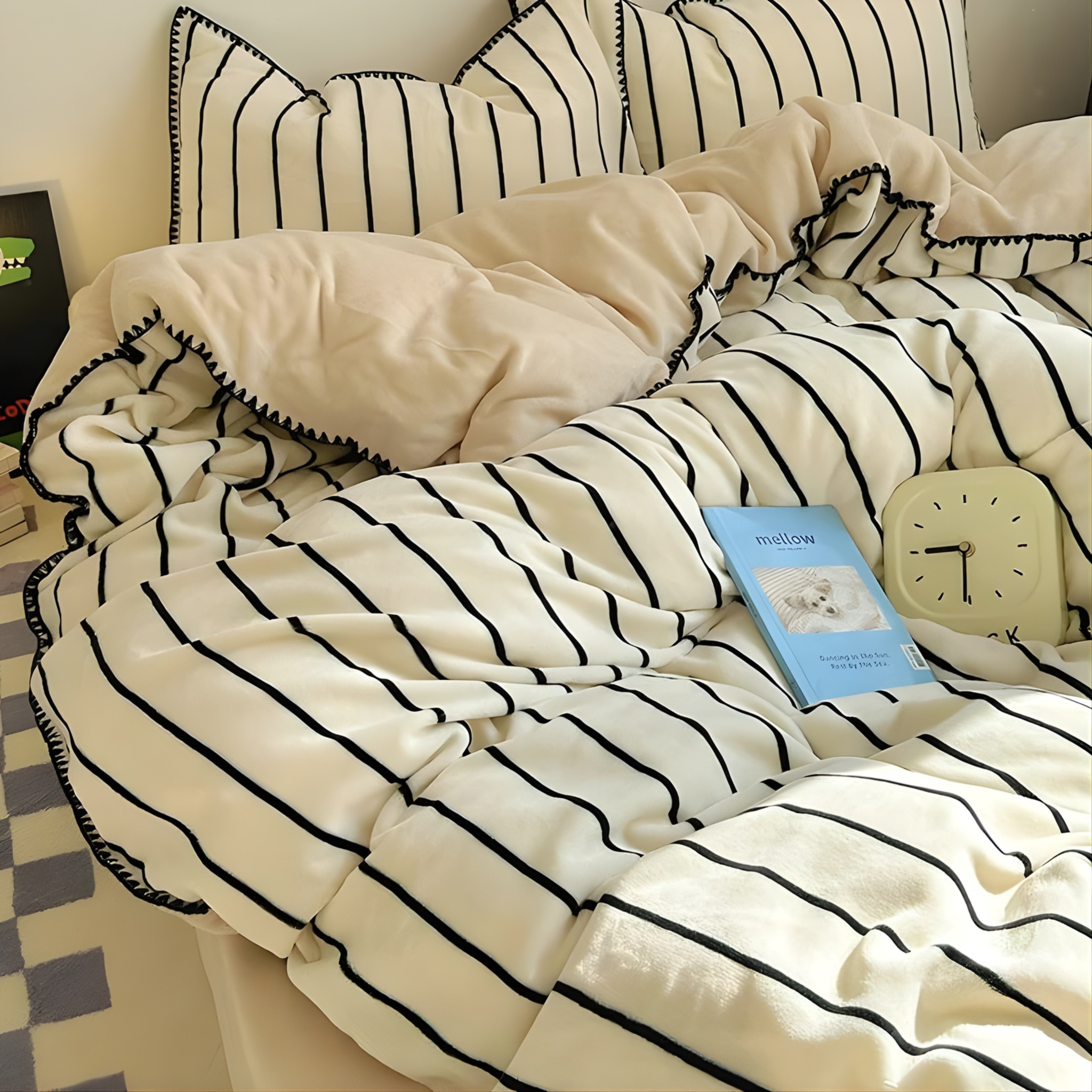 This set combines subtle texture with cosy warmth, crafted from ultra-soft polyester fleece for a plush and breathable finish. With its relaxed striped design and inviting feel, this four-piece set transforms your bedroom into a tranquil retreat.
